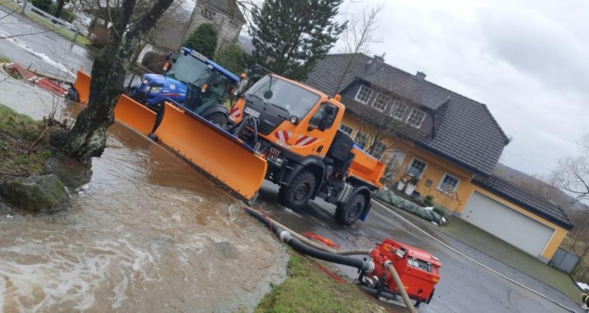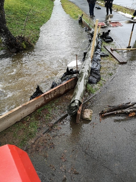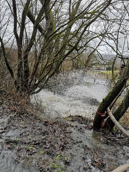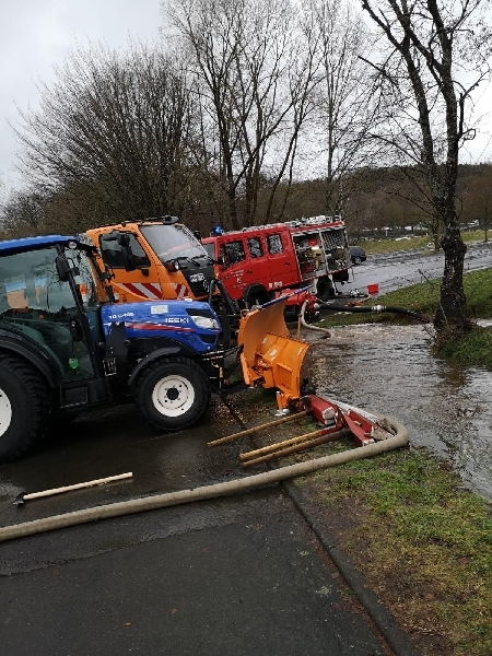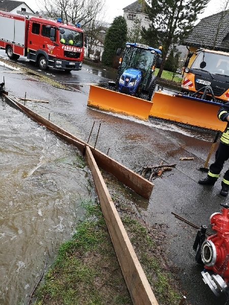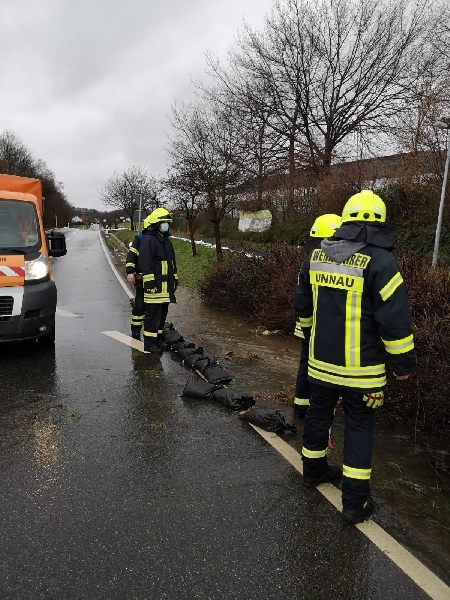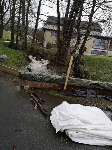 Heute Morgen um 08:55 wurden wir durch die Feuerwehreinsatzzentrale in Bad Marienberg aufgrund des andauernden Regens und Tauwetter zu einem Hochwassereinsatz nach Unnau in die Schwimmbadstraße alarmiert. Vor Ort trat ein Bach über die Ufer und überschwemmte mehrere Straßen. Gemeinsam mit dem Bauhof Unnau und in Absprache mit der Ortsbürgermeisterin besorgten wir Material und Werkzeug, um an diesem Bach einen Schutzwall zu errichten. Hierbei wurden wir von einer ortsansässigen Firma unterstützt, welche freiwillig und hilfsbereit Sandsäcke zur Verfügung stellte. Parallel fuhren wir noch weitere Bachläufe an, um diese zu kontrollieren und ein Übertreten zu verhindern, bzw. auch zu beseitigen. Nach ca. vier Stunden konnten wir unser Gerätehaus wieder anfahren und die Gerätschaften wieder einsatzbereit machen. Die gesamte Einsatzzeit belief sich ungefähr auf fünf Stunden. Es gab auch eine kleine Premiere. Der heutige Einsatz war der erste Einsatz für unser neues MLF. |