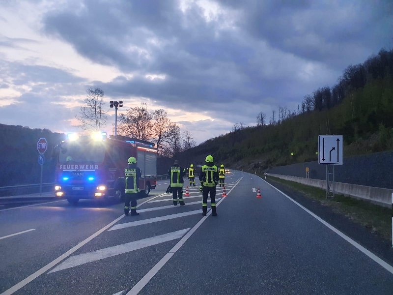Um 20:39 Uhr wurden wir durch die FEZ Bad Marienberg zu Errichtung einer Vollsperrung der B414 an der Abfahrt Unnau-Korb in Folge eines Motorradunfalles alarmiert. |